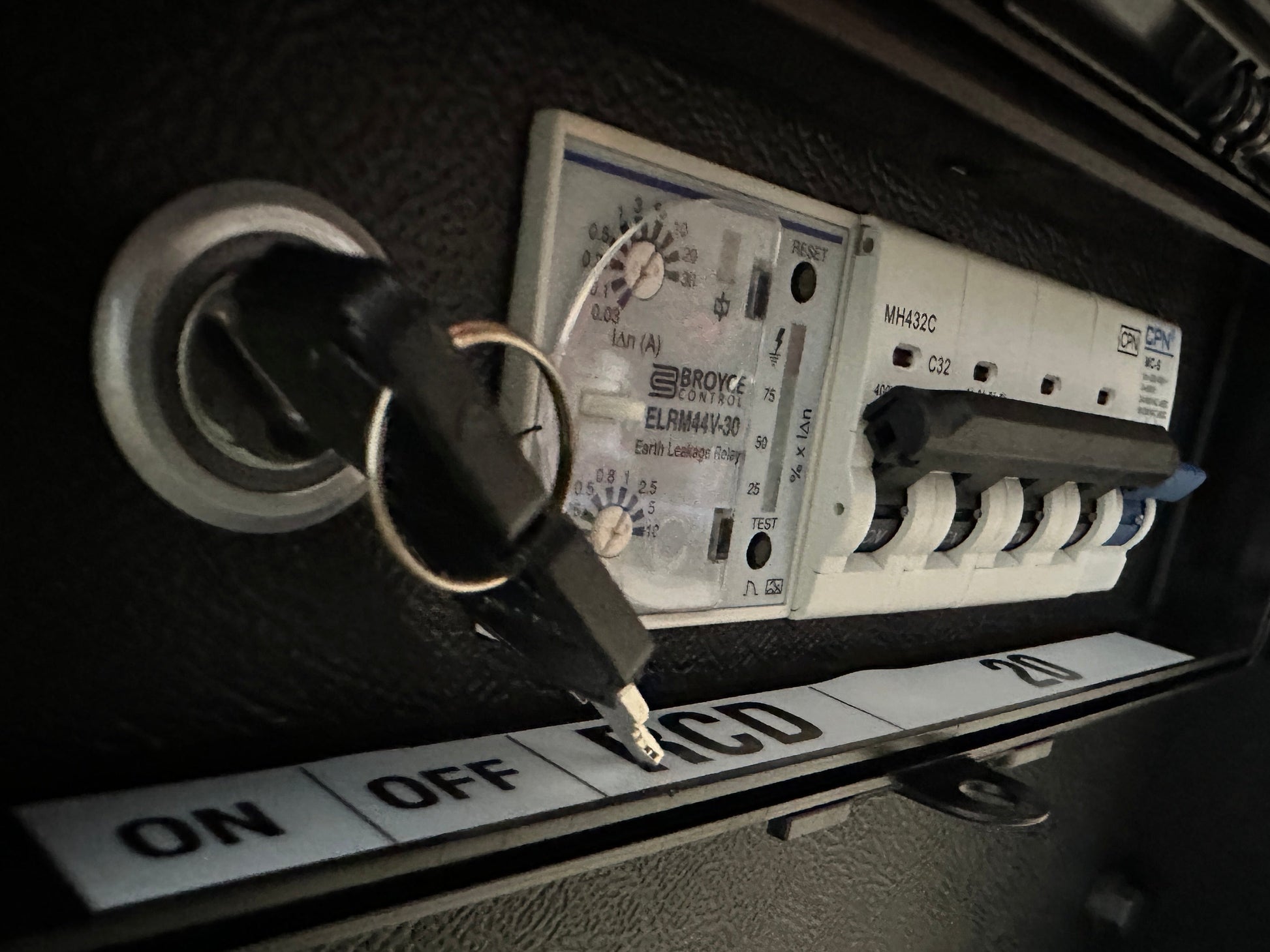 Key controlled bypass so only the keyholder can bypass RCD protection when required by a competent person